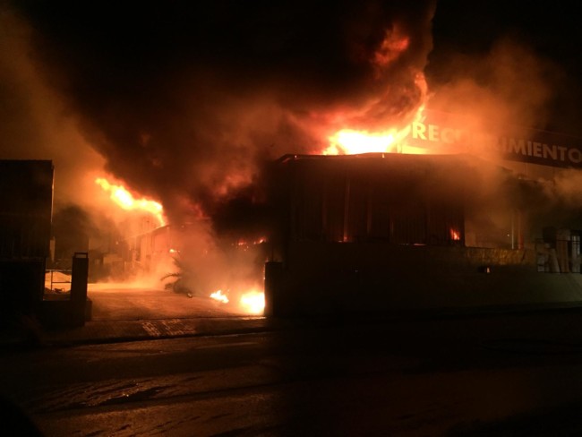 Un incendio industrial calcina parte de una fábrica de pinturas del polígono Bobalar de Massamagrell