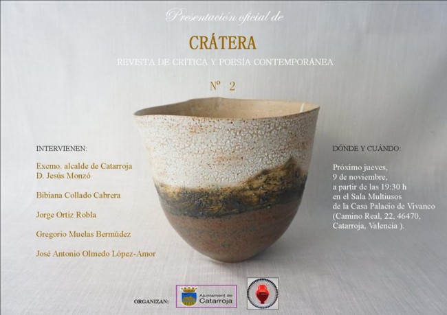 Catarroja acoge la presentación del número 2 de la revista ‘Crátera’ de crítica y poesía contemporánea