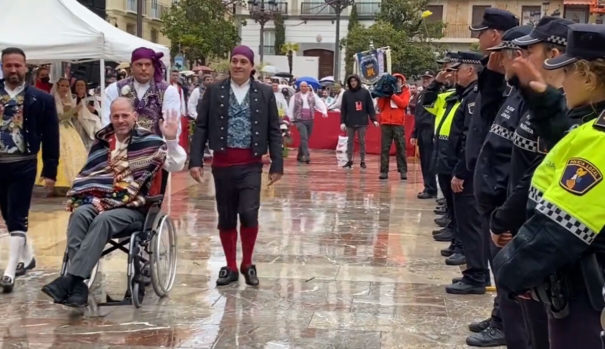 Un policía local de València acude a la Ofrenda para agradecer a la Virgen haber superado una grave dolencia