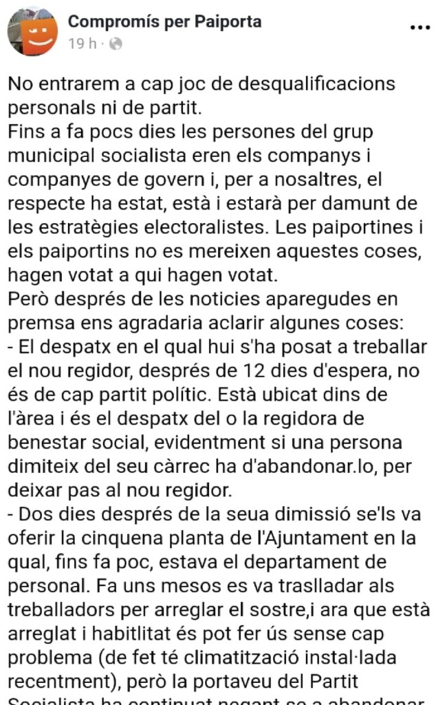 El PP de Paiporta pide a Compromís y PSPV-PSOE que "paren el espectáculo” en redes sociales