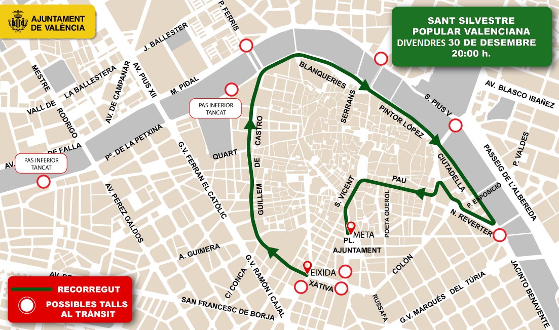 El Ayuntamiento de València prepara un dispositivo de tráfico el día 30 para la San Silvestre