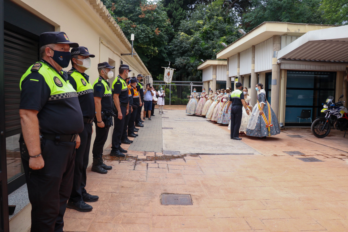 Las Falleras Mayores de Torrent y su corte de honor visitan las dependencias de la Policía Local y la Policía Nacional