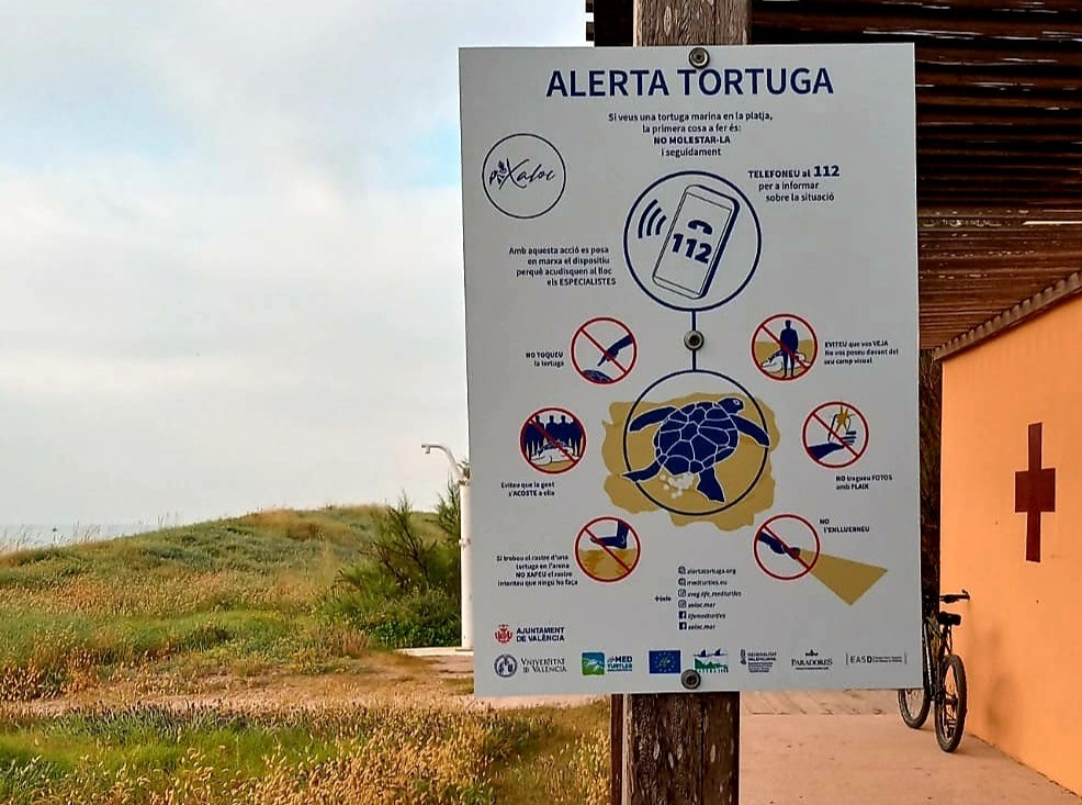 El Ayuntamiento coloca 15 carteles para mejorar la conservación de las tortugas marinas en València
