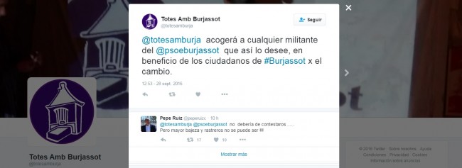 Totes Amb Burjassot incendia twitter al ofrecerse en plena crisis interna del PSOE a acoger a los socialistas de Burjassot