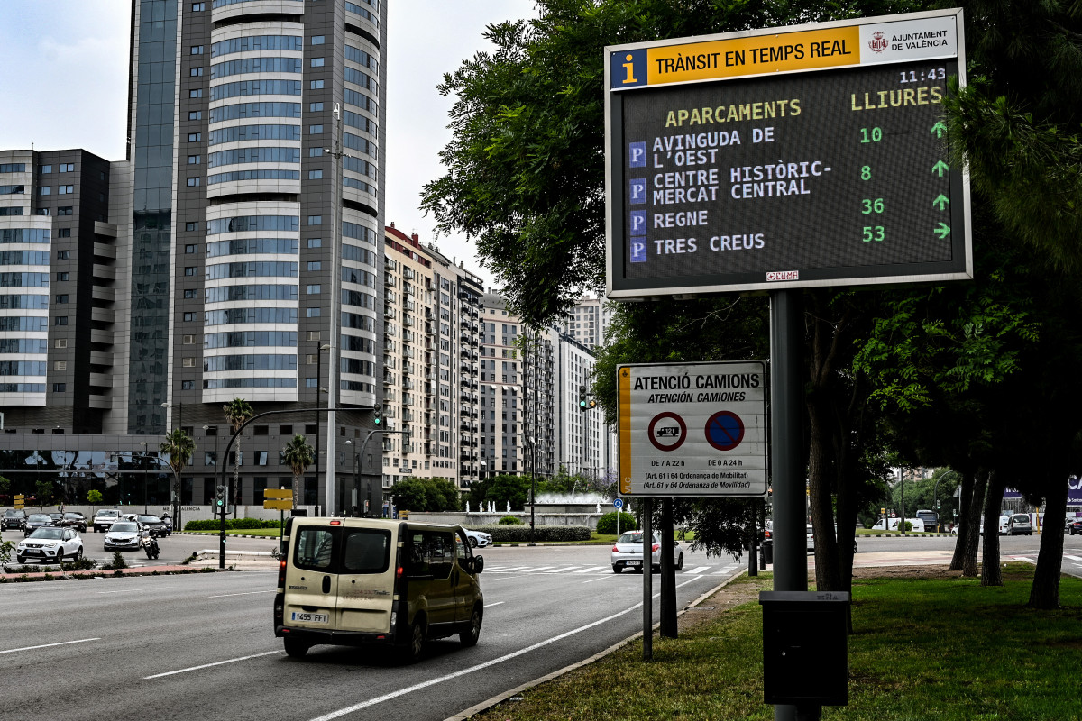 Los cuatro nuevos paneles de tráfico de València informan de las plazas libres en los aparcamientos