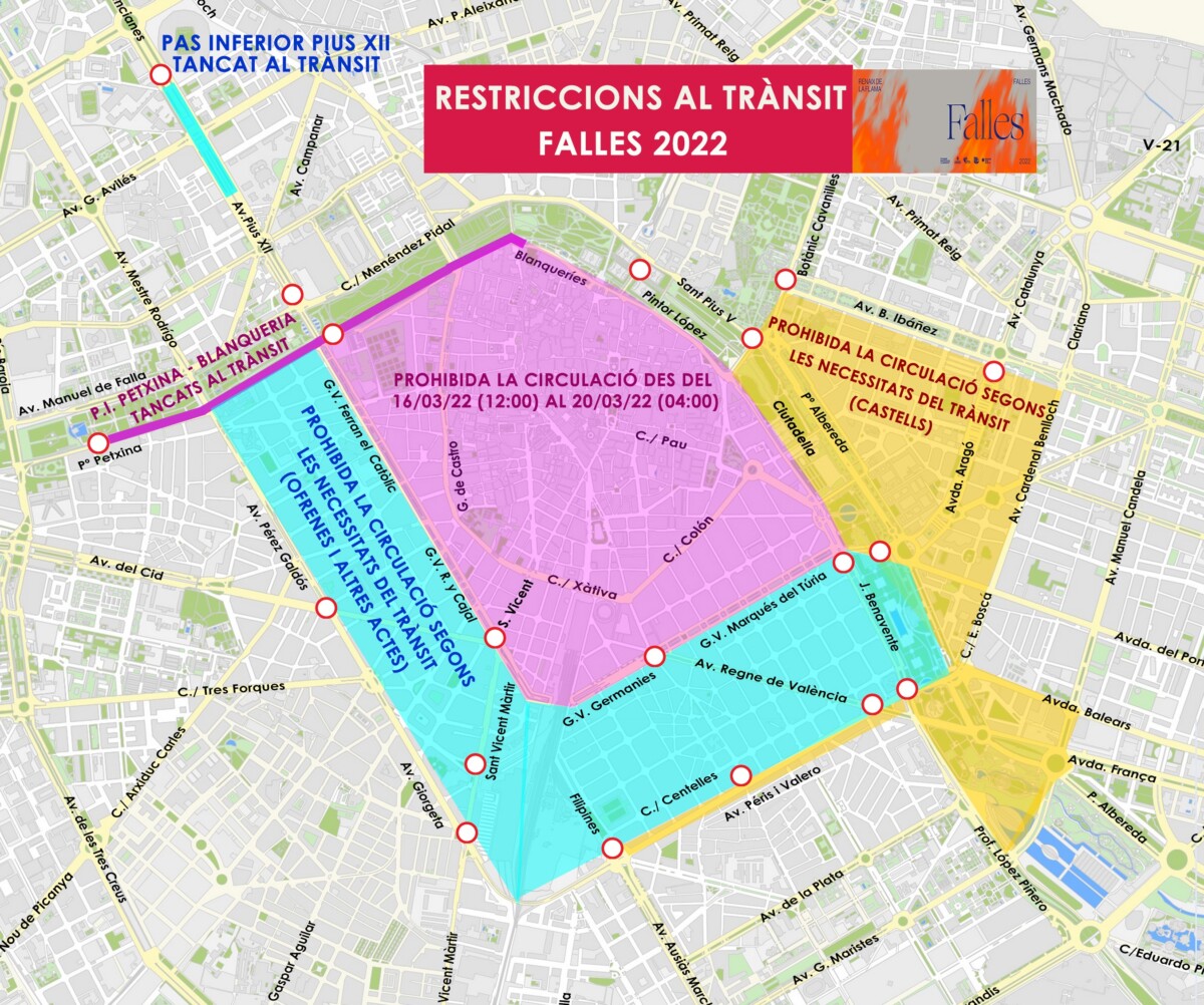 Se cierra el centro de València al tráfico hasta el final de las Fallas 2022