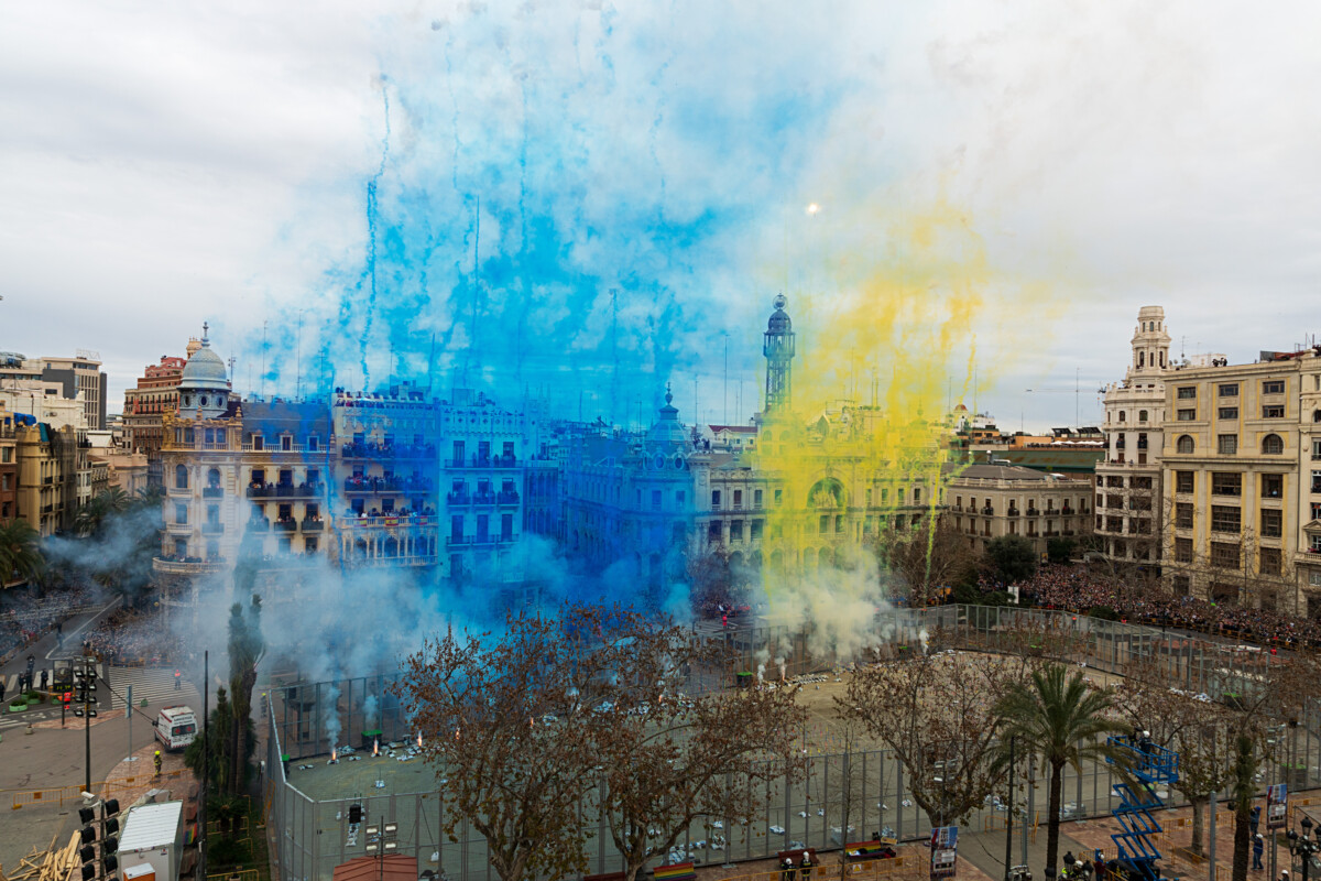 València homenajea al pueblo de Ucrania en la mascletà del 5 de marzo