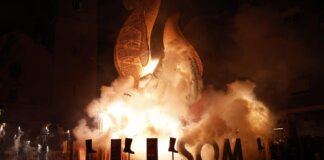 Paiporta quema entre lágrimas de emoción la falla solidaria SOM para "volver a levantarse juntos" tras la DANA