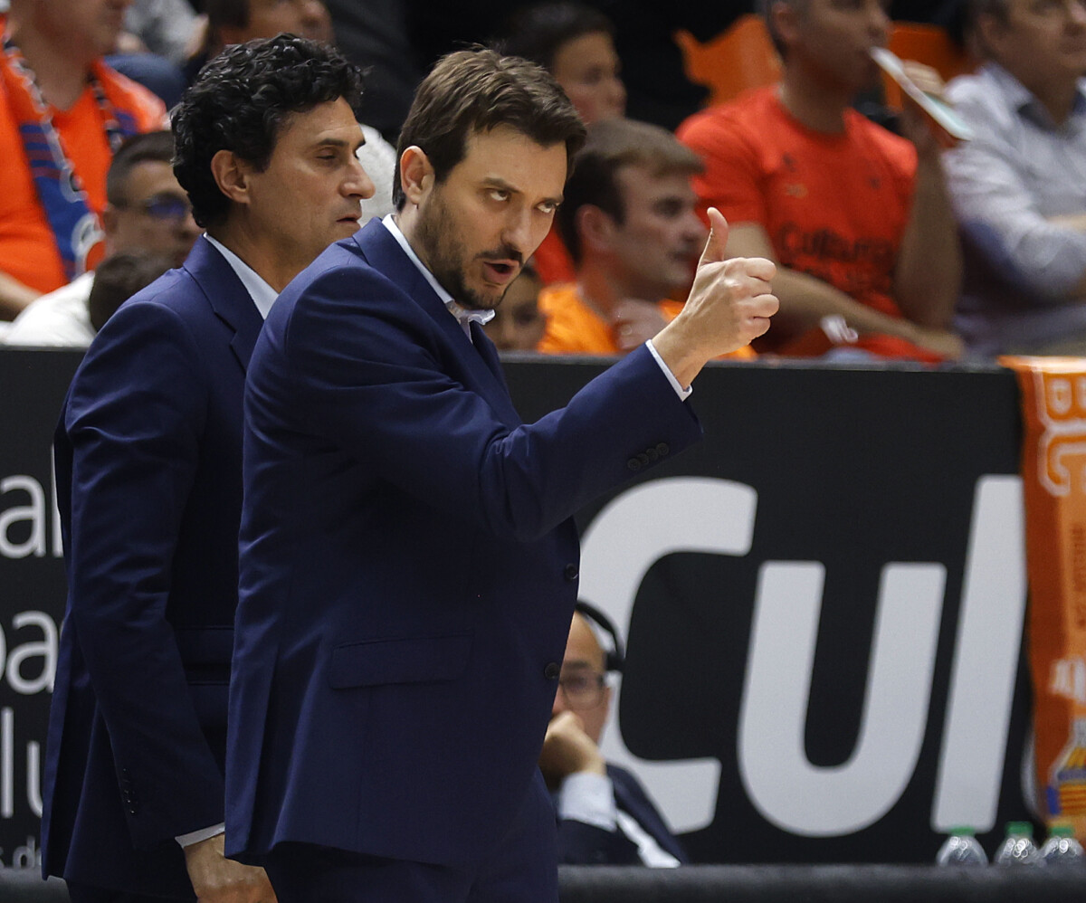 El entrenador del Valencia Basket valora la perseverancia ante la falta de acierto en triples