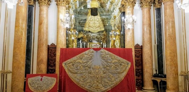 La Basílica restaura el 'manto de los dragones' que la Virgen de los Desamparados llevó en 1940