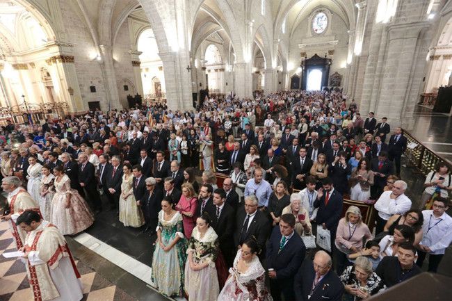 Precisamente, “esto es lo primero y principal, todo el pueblo de Valencia simbolizado en su Senyera, que portan los miembros de lo Rat Penat, entran hoy en la catedral para cantar con música y alegría. Es lo más antiguo, lo más tradicional y lo más genuino de este día 9 de octubre que distinguió Jaime I con la dedicación de este templo catedral”.