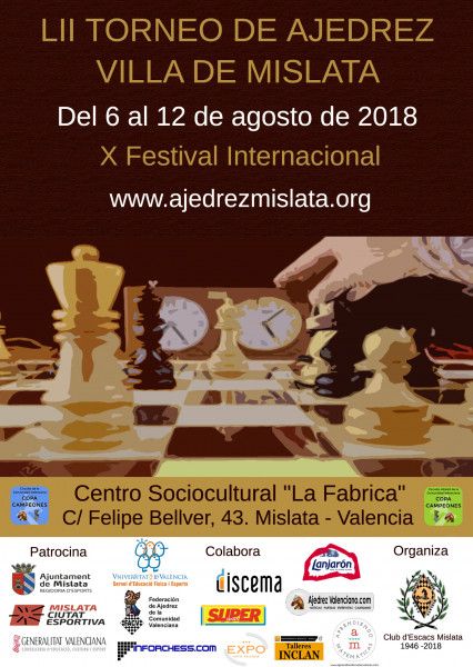 Después de 25 ediciones en las que se han organizado más de 30 torneos abiertos, cuatro cerrados y seis torneos infantiles, definitivamente el Torneo de Mislata se ha convertido en una fiesta del ajedrez valenciano que este año está muy próxima a comenzar, concretamente del 6 al 12 de agosto, en el Centro Sociocultural 'La Fábrica'.