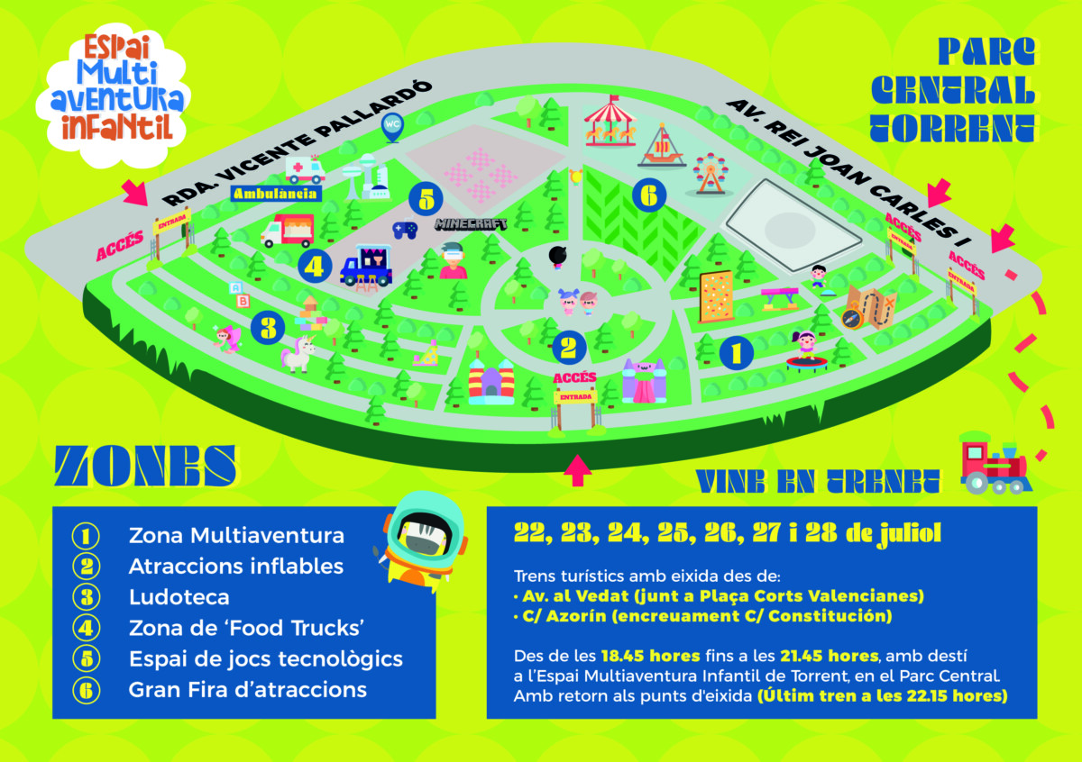 Torrent acogerá del 22 al 28 de julio un espacio infantil multiaventura, en el Parc Central de la localidad, que permanecerá abierto de 19 a 22 horas.