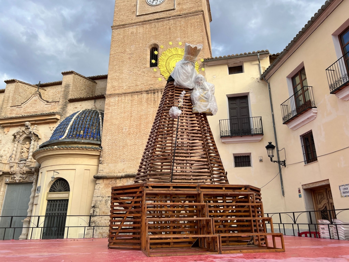 El cadafal ya está listo para recibir los ramos de flores que las falleras de Torrent ofrecerán hoy en una tarde cargada de emoción y devoción hacia la Virgen de los Desamparados.