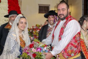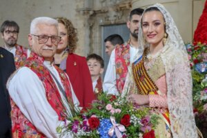 Una ofrenda en la que también les acompañaban la alcaldesa de la ciudad, Amparo Folgado, y el concejal de Cultura y Fallas, Aitor Sánchez.