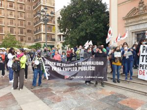 Fotos: Ana Emilia Quiñonero.- Miles de personas interinas y temporales del conjunto de la función pública (educación, sanidad, justicia, administración general del Estado, administraciones locales, sector público instrumental, etc.) han recorrido este jueves las calles de València y Alicante para manifestarse por la consolidación real y efectiva y contra el denominado decreto Iceta que ya provocó en su día movilizaciones que no han encontrado, de momento, eco en el ejecutivo de Pedro Sánchez.