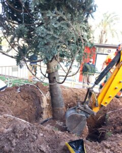 El lunes ya se quitó toda la decoración navideña y se ataron las ramas para poder trasladarlo. A su vez, se hizo el aguajero en el destino, se preparó drenaje de fondos y se añadió turba para poder replantarlo hoy.