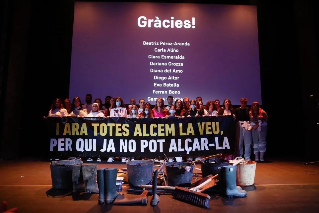 Desde las 11:30 horas, el teatro acogió un programa cargado de memoria. Afectados por la riada compartieron sus historias y homenajes junto a la participación de diversos artistas y músicos, entre ellos Pau Alabajos, Miquel Gil, Eva Romero y la Nova Muixeranga d'Algemesí. Además, el grupo Último Pasillo cedió su tema 'Lladres de sobretaula' para el acto.