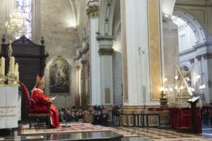 Fotos: Manolo Guallart.- Una misa solemne en la Catedral presidida por el Arzobispo de Valencia, el Cardenal Antonio Cañizares, celebró la fiesta de San Vicente Mártir, patrón de la ciudad y de la archidiócesis de Valencia. En su homilía, el Cardenal proclamaba que “San Vicente y todos los mártires atestiguan en su martirio la capacidad de verdad del hombre como límite de todo poder”.