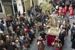 Concluida la eucaristía tuvo lugar la procesión con la imagen de madera plateada de San Vicente Mártir, obra del escultor valenciano del siglo XVIII, José Esteve Bonet. El recorrido de la imagen comenzó en la plaza de la Reina, siguiendo por la calle del Mar, Avellanas, plaza del Arzobispado y plaza de la Almoina para regresar a la Catedral.