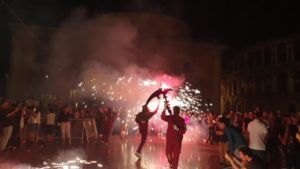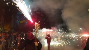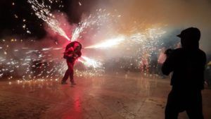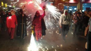 Fotos: Agustín Verdeguer.- En el marco de los eventos programados con motivo del 9 d'Octubre, Día de la Comunidad Valenciana, el pasado sábado por la tarde tuvo lugar en el barrio del Carmen un gran Correfoc que, partiendo de las Torres de Quart, recorrió toda la calle Caballeros hasta llegar a la plaza de la Virgen. donde acabó con un gran despliegue pirotécnico.