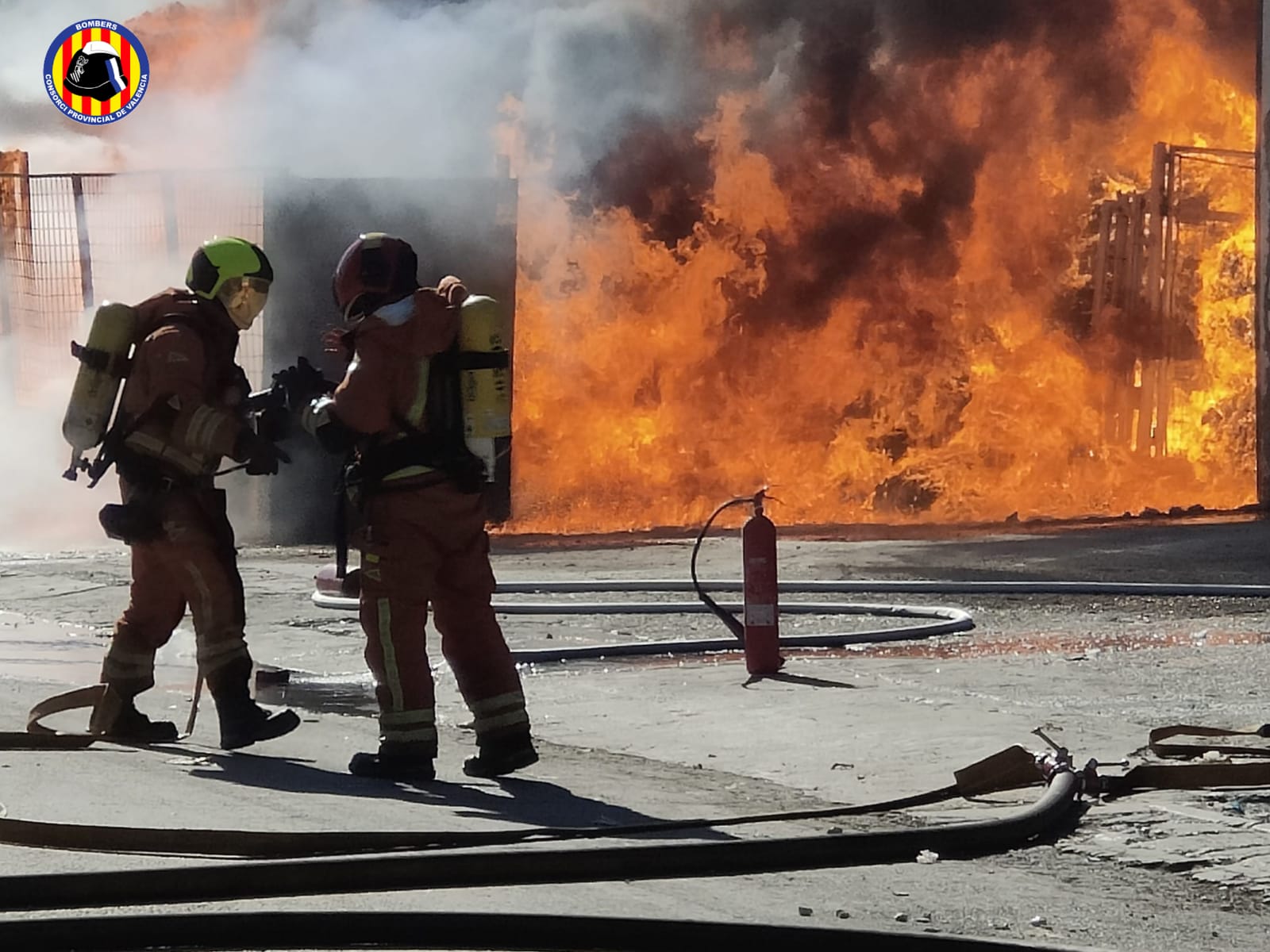 El fuego afectaba un patio exterior lleno de balas de plástico, por lo cual el objetivo del Consorcio ha sido en todo momento controlar el incendio y frenar su propagación hacia el interior de dos naves de la misma empresa. Finalmente, se ha conseguido cortar el avance. Se ha visto parcialmente afectadas parte de las paredes de las naves pero se ha impedido que el fuego quemara el material almacenado en el interior.