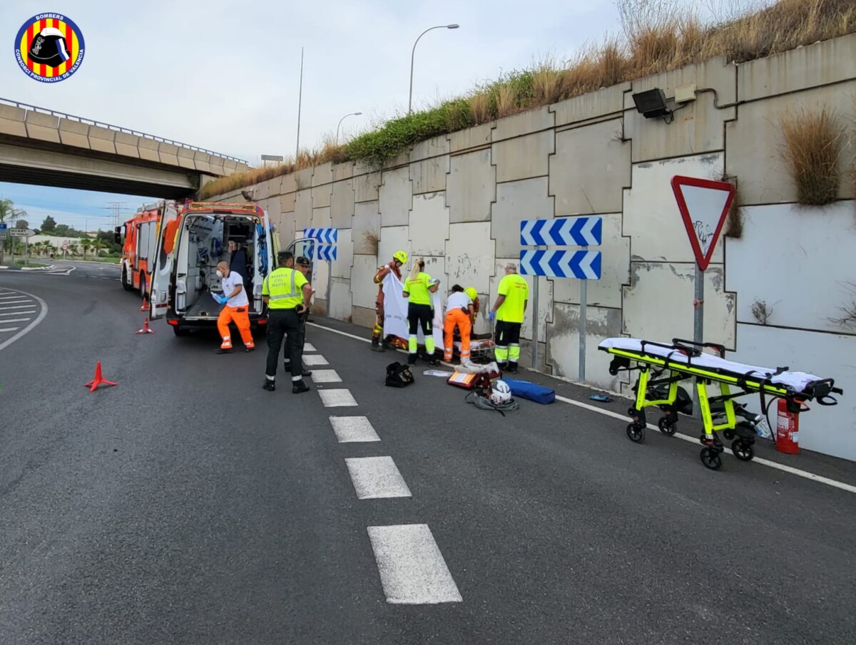A primera hora de este jueves, un hombre ha resultado herido tras sufrir un accidente con su moto en el término municipal de Xirivella, según han informado fuentes del Centro de Información y Coordinación de Urgencias (CICU) y del Consorcio Provincial de Bomberos de Valencia.