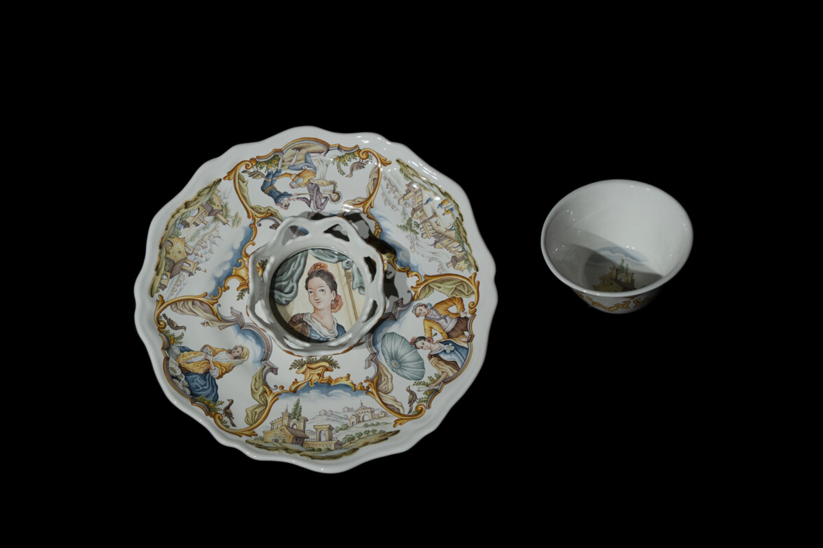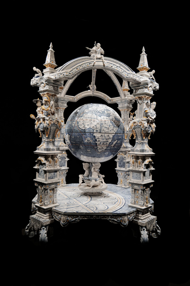 La pieza, homenaje a Magallanes y Elcano en su primera circunnavegación del mundo, está inspirada en los diversos diseños escenográficos que el célebre Jean Bérain (1640-1711) hiciera para la corte del rey Luis XIV de Francia. Es una obra única y excepcional, creada por AlcoRa La Ilustre Cerámica, taller impulsado por los hermanos Óscar y Jorge Carnicer.