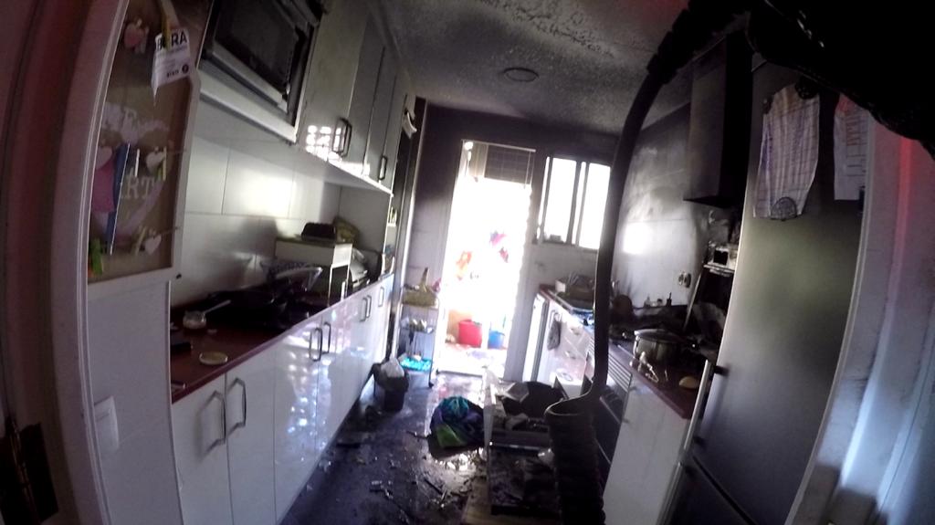 Una sartén ha causado un incendio en la cocina de una vivienda en la calle Benimuslem de València, este lunes.