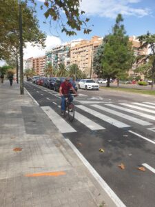 El resto de la actuación, que está actualmente en ejecución y que completará un eje ciclable de 2,1 kilómetros hasta la plaza de España, continúa a buen ritmo. El carril llegará hasta este punto de la ciudad desde la avenida del Cid a través de las calles de San José de Calasanz, San Francisco de Borja y Pintor Benedito. Esta semana se está actuando en la instalación de semáforos y obra civil del cruce de la avenida con Pérez Galdós, un punto que está requiriendo de muchos esfuerzos técnicos por su complejidad, tal como ha subrayado el concejal.