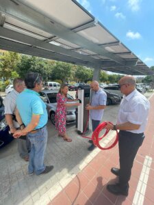 La alcaldesa en funciones y concejala de Recursos Humanos y Técnicos, Julia Climent, ha destacado que “con esta actuación, cuyo presupuesto total asciende a más de 1.200.000 euros, unida a los puntos existentes y a otros 18 que empezaron a instalarse a finales del pasado año, València dispondrá en 2024 de un total de 126 puntos de recarga”. Estas manifestaciones las ha realizado Climent en su visita al poste ubicado en el centro comercial Aqua que además cuenta con paneles fotovoltaicos para su alimentación energética.