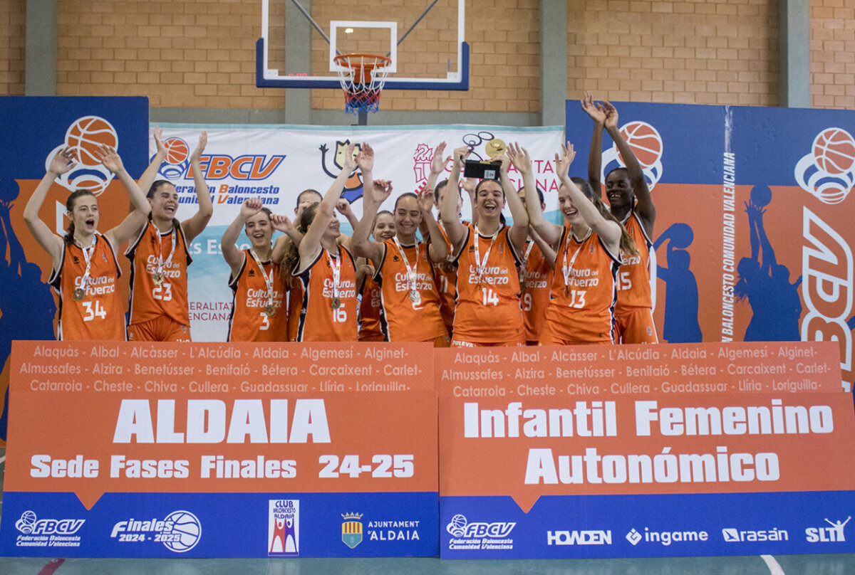 El equipo infantil femenino de Valencia Basket ha conquistado el título IR Autonómico de la temporada 2024-2025 con un rendimiento sobresaliente durante toda la Fase Final disputada en Aldaia