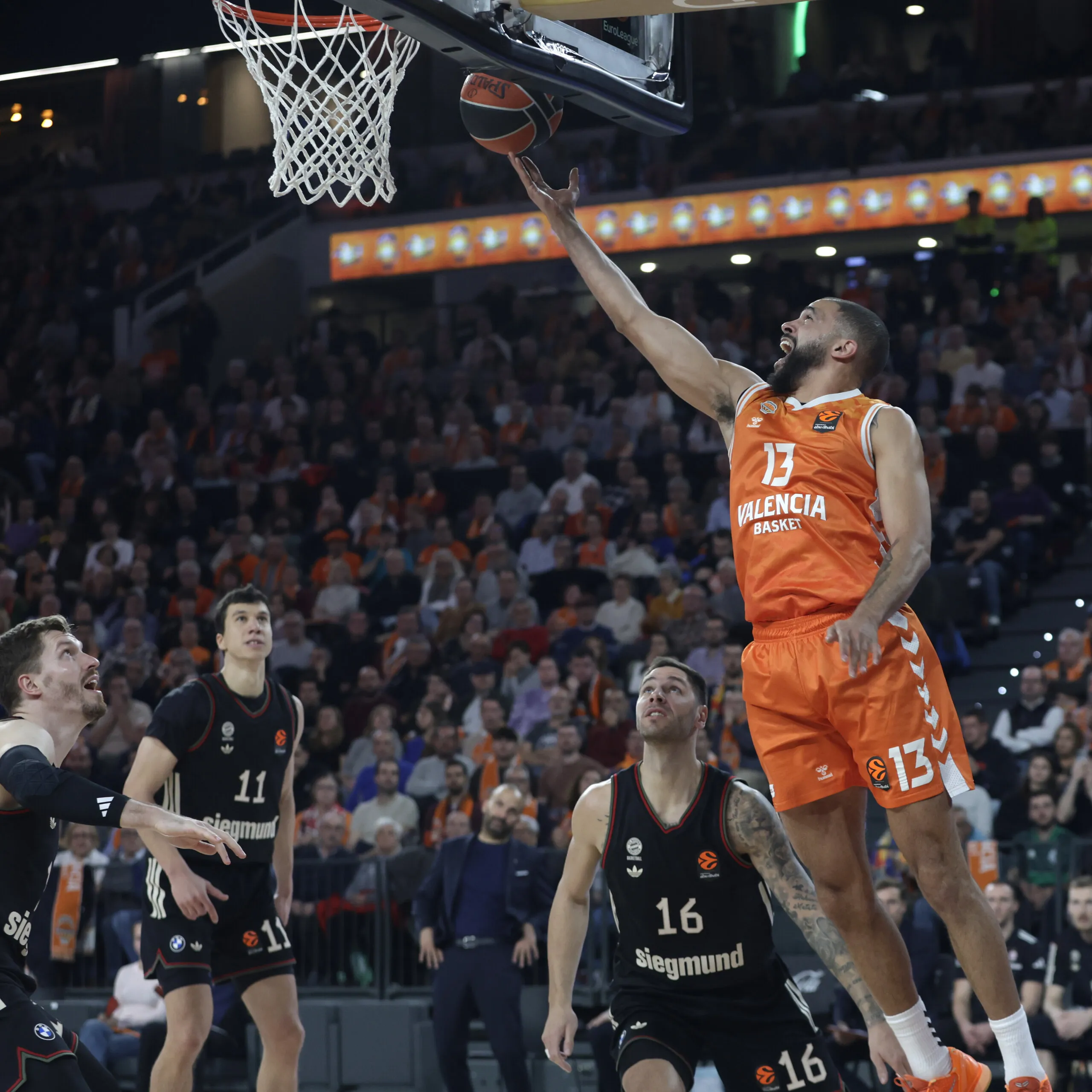 La defensa taronja obligó al Bayern a lanzar siempre desequilibrado o forzado. El dato resume el encuentro: el Bayern necesitó 34 triples para anotar solo 18 puntos desde fuera; Valencia, con 30 lanzamientos, anotó 33 puntos.