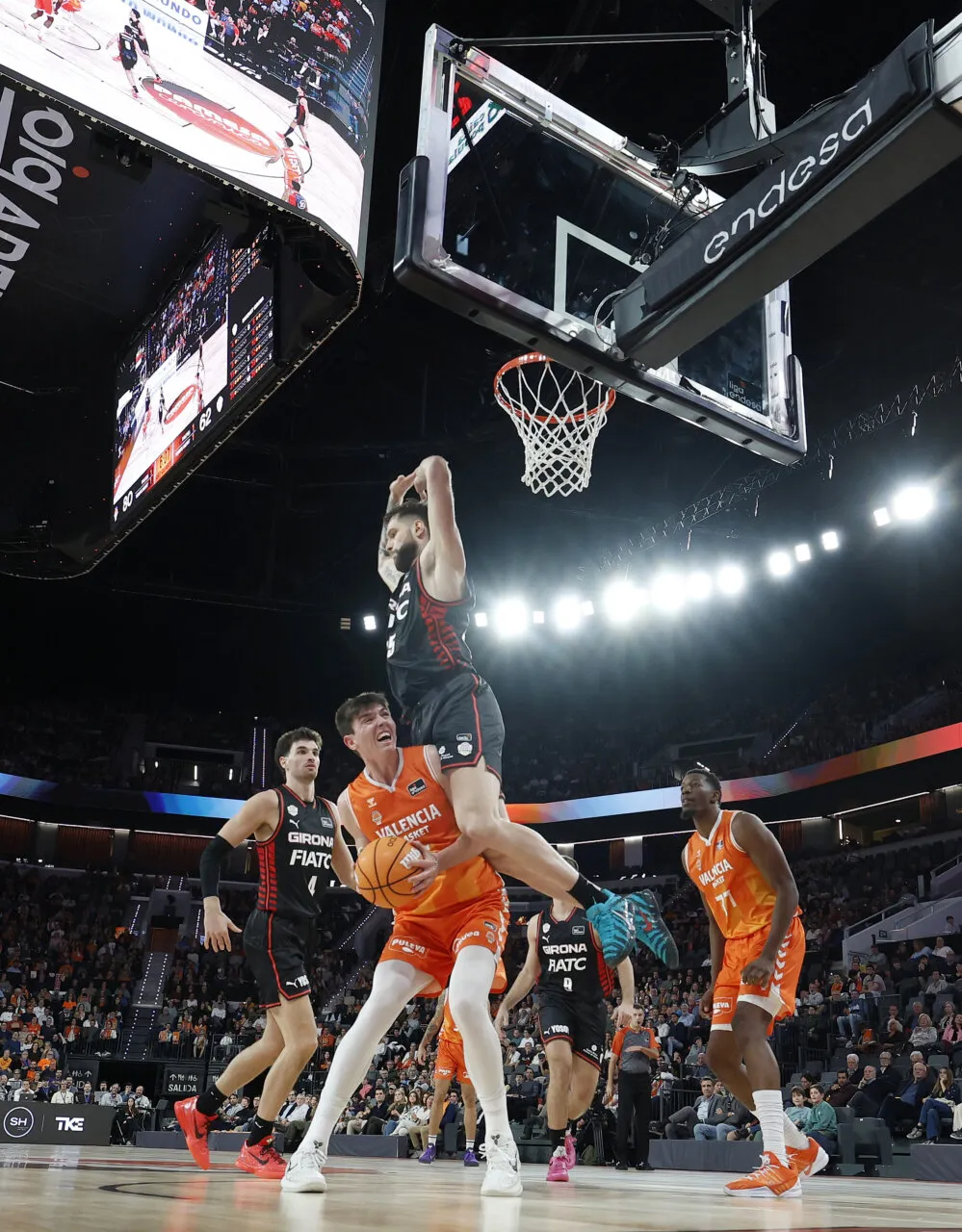 El técnico taronja apostó de inicio por Darius Thompson, Brancou Badio, Josep Puerto, Matt Costello y Nate Reuvers. La puesta en escena fue incontestable: un 12-2 inicial fruto del acierto exterior y la intensidad atrás que marcó el pulso del choque. Girona intentó responder con triples de Livingston y Hughes, pero Valencia controló el ritmo y cerró el primer cuarto con un claro 26-16.