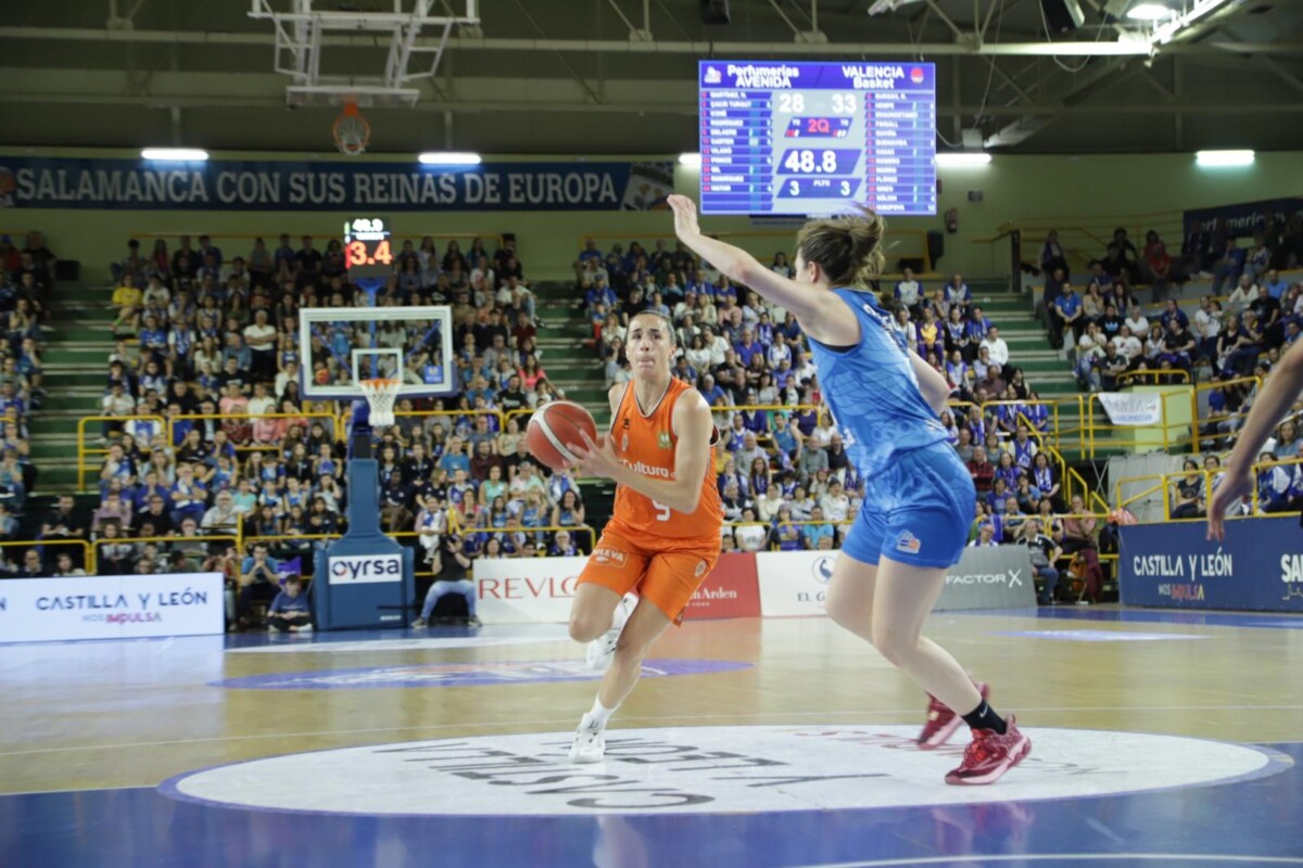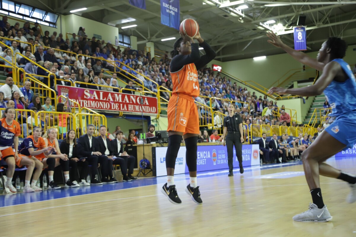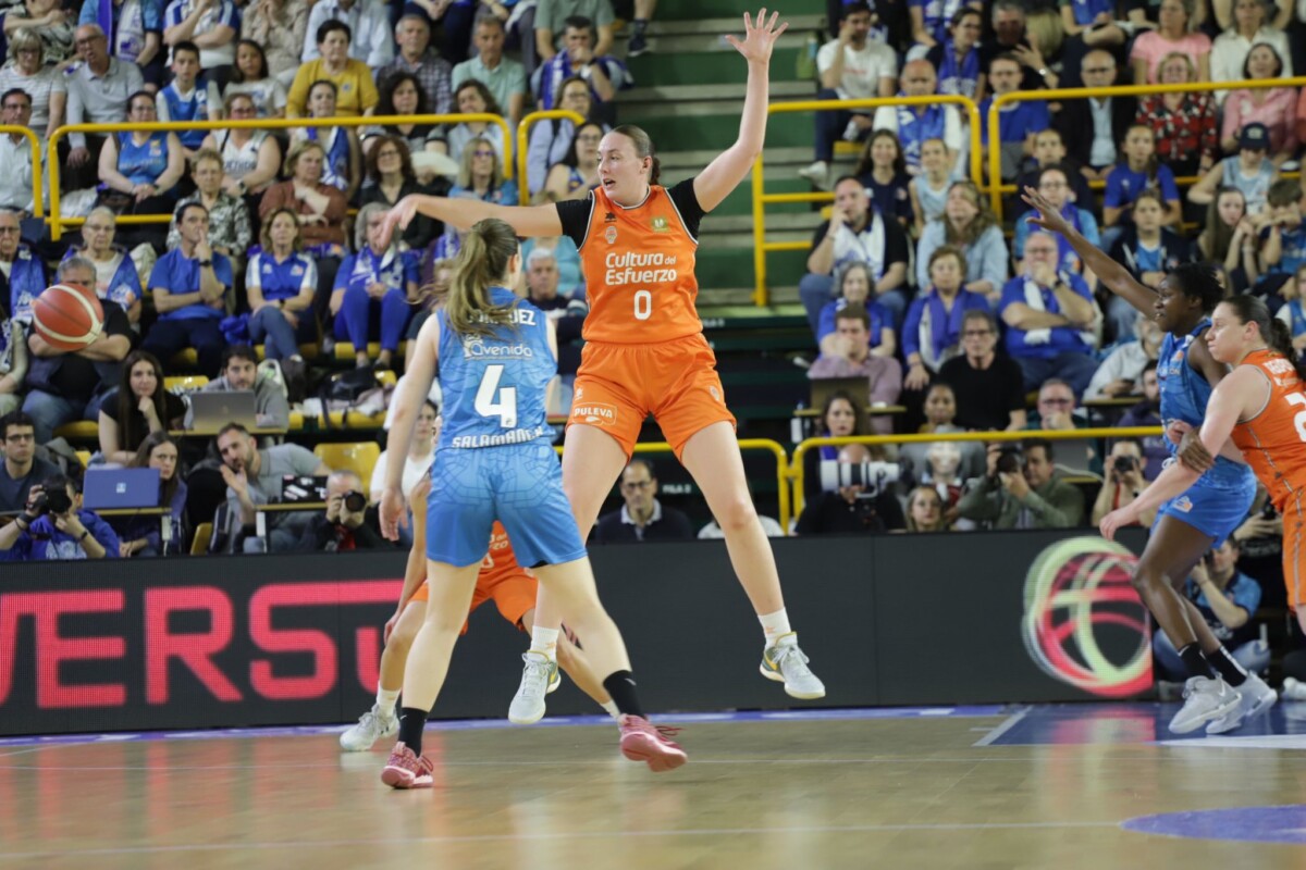 El equipo, liderado por la defensa y la estelar actuación de Alina Iagupova, quien sumó 15 puntos, 6 rebotes, 3 asistencias, 1 robo y 18 de valoración, arrebató el factor cancha a Salamanca y ahora tiene la oportunidad de ganar el triplete y revalidar el título de LF Endesa este domingo en la Fonteta.
