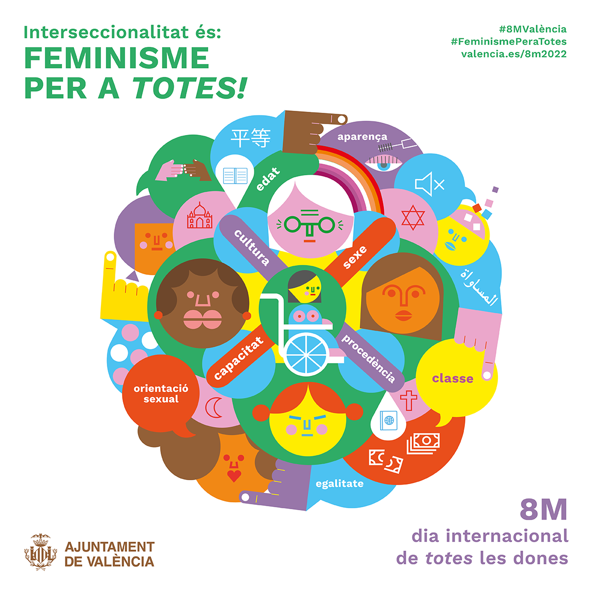 El cartel de esta campaña “representa las diferentes tipos de discriminaciones y opresiones”, y el programa de actos, que se puede consultar en la web www.valencia.es/8m2022 incluye charlas, espectáculos, talleres y otras actividades “para remover desde diferentes ámbitos todos los obstáculos que impiden el ejercicio igualitario de toda la ciudadanía”.