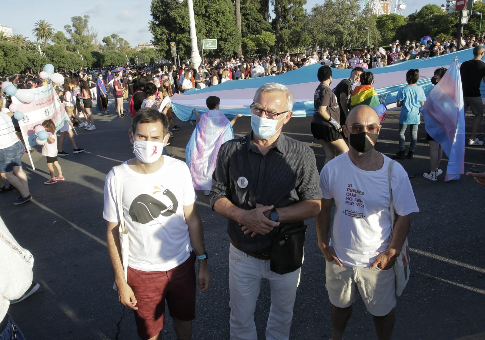 La manifestación del Orgullo ha vuelto a tomar esta tarde las calles de València después del parón del año pasado a causa de la pandemia para reivindicar la diversidad y los derechos de las personas trans. El alcalde, Joan Ribó, acompañado de la concejala de Igualdad, Políticas de Género y LGTBI, Lucía Beamud, y otros miembros del equipo de gobierno, ha participado en el recorrido, en el que se ha difundido la lectura del Manifiesto del Orgullo LGTB+ 2021. En él se traslada al gobierno central la necesidad de una ley trans estatal. El Ayuntamiento de València ha respaldado este documento junto con más de 60 entidades, partidos políticos y sindicatos.