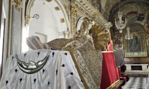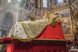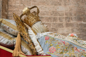 Por la mañana en la Catedral, tras el canto de laudes, el Arzobispo y el Cabildo recibían, en la Puerta de los Hierros, la llegada de la imagen de la Dormición de la Virgen, que era trasladada desde la Capilla de la Virgen del Milagro, en la calle Trinquete de Caballeros, portada por miembros del “Grup de Mecha” caracterizados como los doce apóstoles.