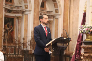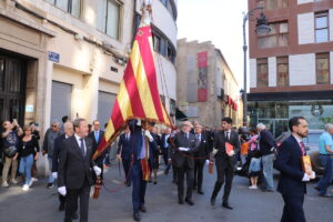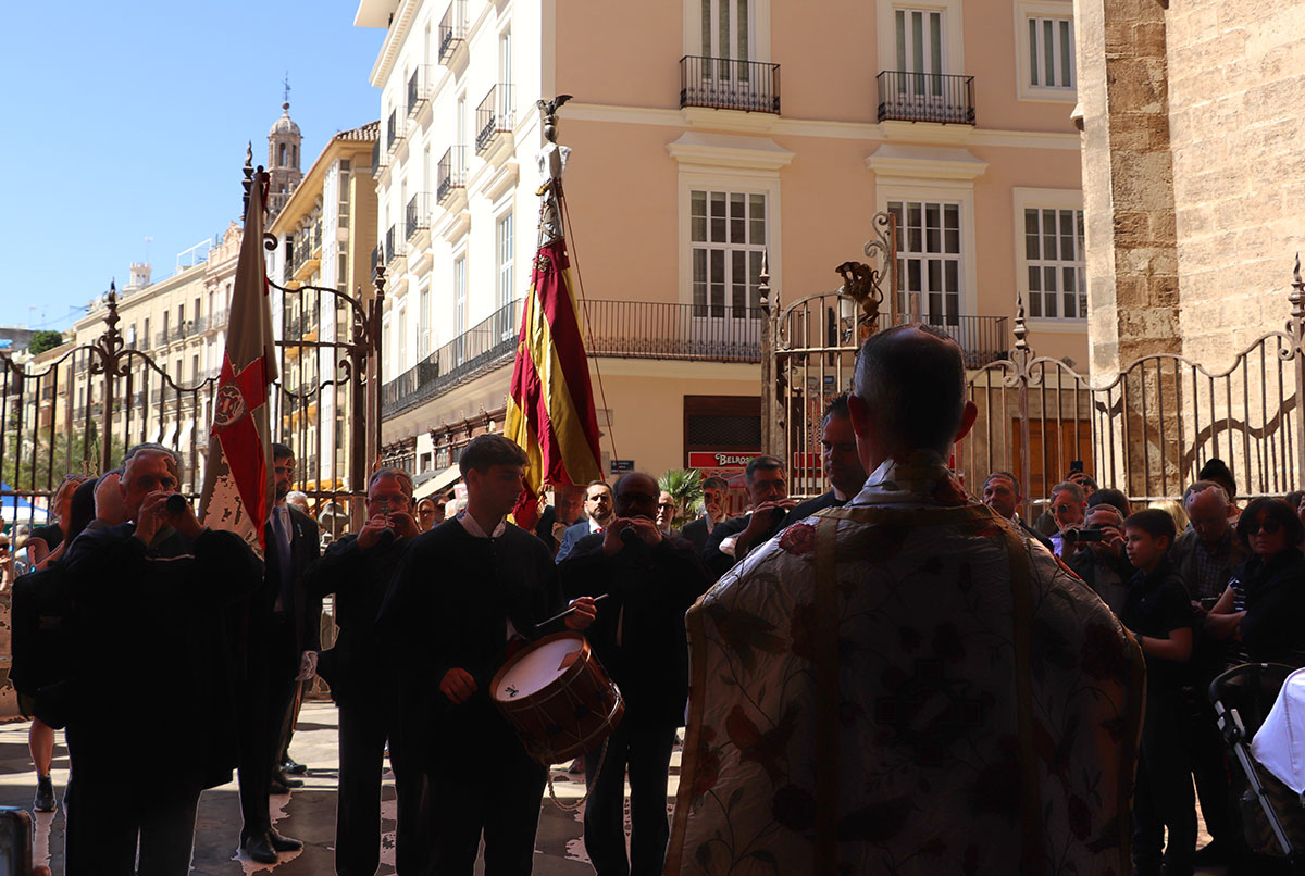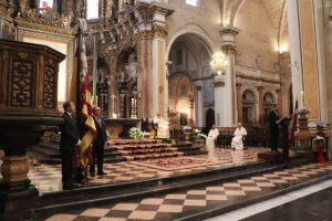 Al filo del mediodía, el Cabildo de la Catedral recibía a la Real Senyera y su comitiva y, en su interior, se realizaraba una bienvenida a cargo del Vicelloctinent Òscar Rueda, para dar paso a la misa en sufragio de las almas de los patriotas valencianos, oficiada por el Caballero del Centenar Álvaro Almenar.