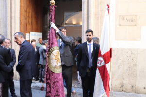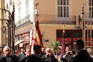 Al término de la ceremonia, la comitiva regresaba por el mismo itinerario hasta el Colegio del Arte Mayor de la Seda, donde se volvía a realizar la subida de la Real Senyera hasta el mismo balcón por el que había sido bajada.