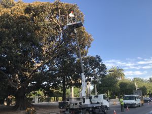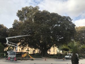 El Ayuntamiento de València, a través del servicio de Jardinería Sostenible, está realizando durante los meses de verano trabajos de conservación de las 24 higueras australianas, los árboles más grandes de la ciudad, que forman parte del patrimonio arbóreo monumental de València. Se trata de los ejemplares monumentales de Ficus macrophylla emplazados en el Parterre, la Glorieta o la Alameda. El vicealcalde y concejal de Ecología Urbana, Sergi Campillo, ha señalado que el objetivo es “garantizar la salud de unos ejemplares gigantescos que nos ofrecen un enorme abanico de servicios, materiales e inmateriales, mejoran nuestra calidad de vida y son también la base de la infraestructura verde urbana, el activo más valioso que tenemos ante la amenaza del cambio climático”.