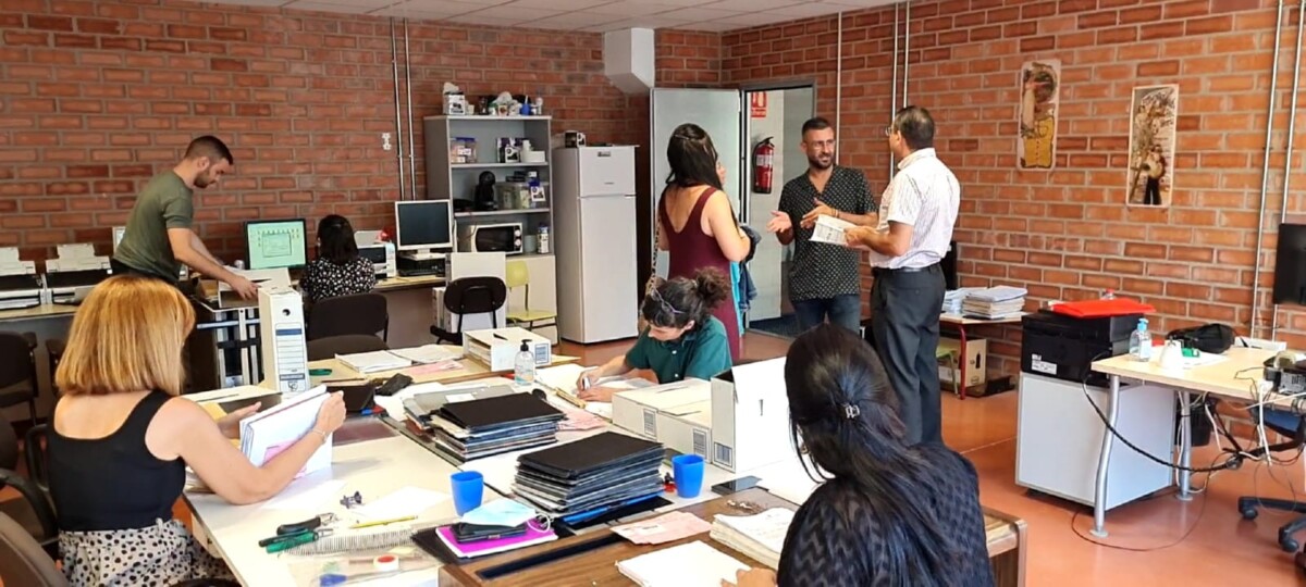 El concejal de Agenda Digital, Pere Fuset, acompañado por personal técnico del Servicio municipal de Tecnologías de la Información y la Comunicación (SerTIC), ha visitado el archivo intermedio municipal de Vara de Quart para interesarse por los trabajos de digitalización necesarios para el proyecto de transformación digital RAYO.