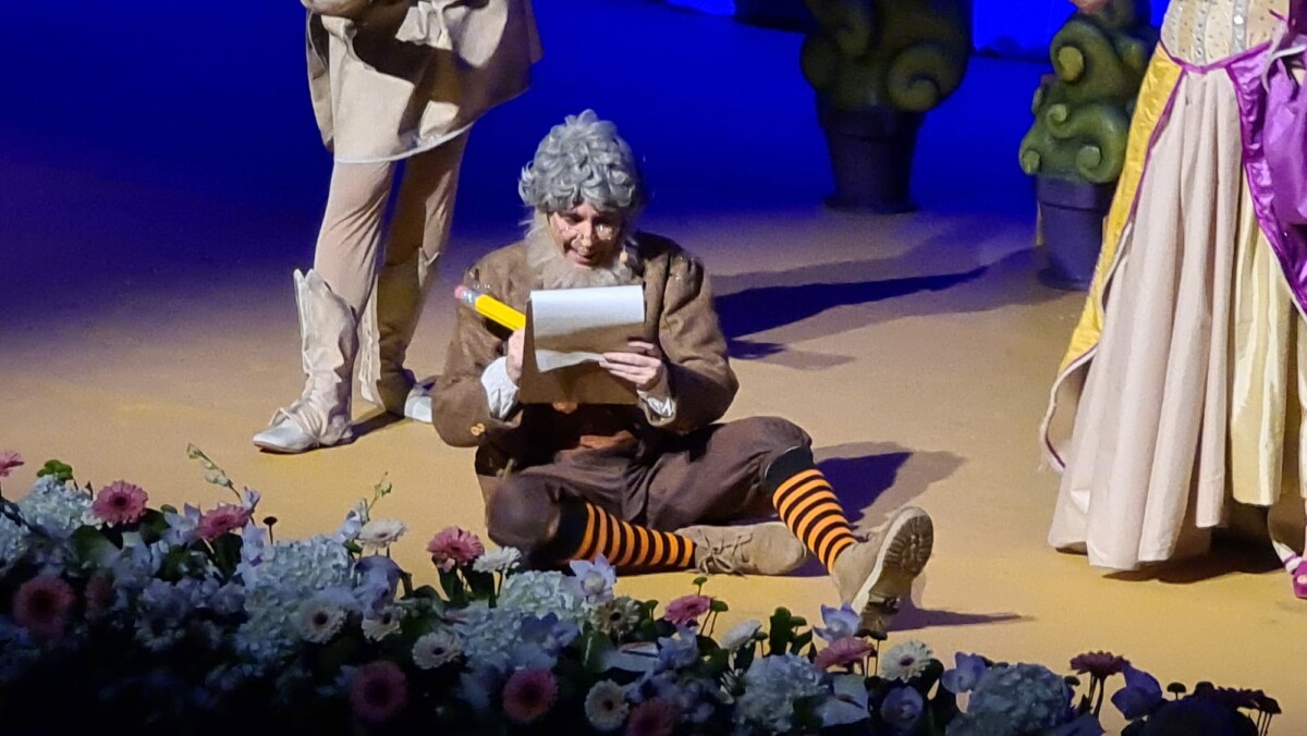 Así, Nerea y su Corte de Honor encontraron el más cariñoso recibimiento que podían esperar a su llegada al recinto del Palacio de Congresos, y la tarde se estrenaba en sonrisas, en aplausos y parabienes cuando, aún sin apagarse las luces del patio de butacas, un curioso personaje con ropas de otra época y un gran lápiz en sus manos, hacía su entrada por entre las falleras que asistían al acto y comenzaba así el espectáculo.