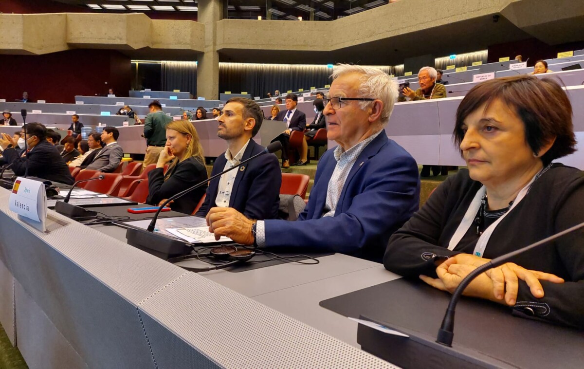El alcalde de València, Joan Ribó, acompañado por el vicealcalde y concejal de Devesa-Albufera, Sergi Campillo, ha participado en la ceremonia de entrega de los galardones de Ciudades de Humedales RAMSAR, en Suiza.