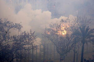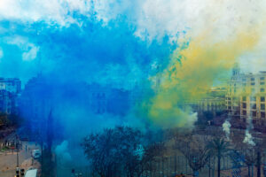 Fotos: Antonio Cerveró.- Imposible abstraerse al horror de la guerra que vuelve a tomar el corazón de Europa casi 80 años después. Incluso en la fiesta de las Fallas. València, que ha demostrado ya en reiteradas ocasiones su condición y vocación de ciudad refugio, está esperando con los brazos abiertos a quienes han sido arrancados de su hogar por la fuerza de los misiles en Ucrania. Y este sábado, 5 de marzo, lo ha querido visualizar en mitad de una de las expresiones más impactantes de su fiesta grande: la mascletà.
