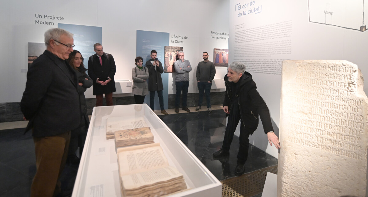 La piedra se encuentra actualmente en la sala de exposiciones temporales del Ayuntamiento de València y forma parte de la exposición “La Casa de la Ciutat i el bon govern”. El alcalde y la concejala han visitado esta mañana la muestra, que recorre la historia de la Casa de la Ciutat y del posterior Ayuntamiento de València desde la conquista de Jaume I hasta la creación de la actual Casa Consistorial, junto al convento de Sant Francesc.