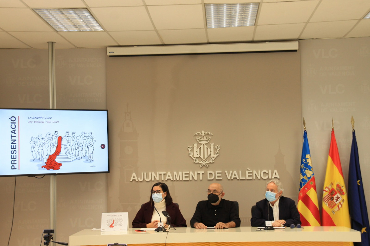 En el marco de la celebración del Año Berlanga, el Ayuntamiento ha elaborado un calendario de homenaje a la figura internacional del cineasta valenciano Luis García Berlanga, con dibujos del reconocido humorista gráfico, también valenciano, Antonio Ortiz Fuster, Ortifus. La vicealcaldesa y concejala de Desarrollo Urbano, Sandra Gómez, y el concejal de Turismo, Emiliano García, acompañados por el ilustrador, han presentado la iniciativa y la tirada inicial de 15.000 ejemplares, que se repartirán gratuitamente en centros de turismo, centros de juventud, asociaciones de personas mayores, entidades cívicas y asociaciones ciudadanas.