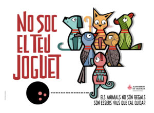 La Concejalía de Bienestar Animal ha impulsado, por octavo año consecutivo, y con motivo de las compras que se realizan en Navidad, la campaña ‘No soy tu juguete’. Tal y como ha explicado la concejala Glòria Tello, "se trata de una iniciativa para sensibilizar a la ciudadanía, niños y adultos, sobre la responsabilidad que supone la adopción de un animal".