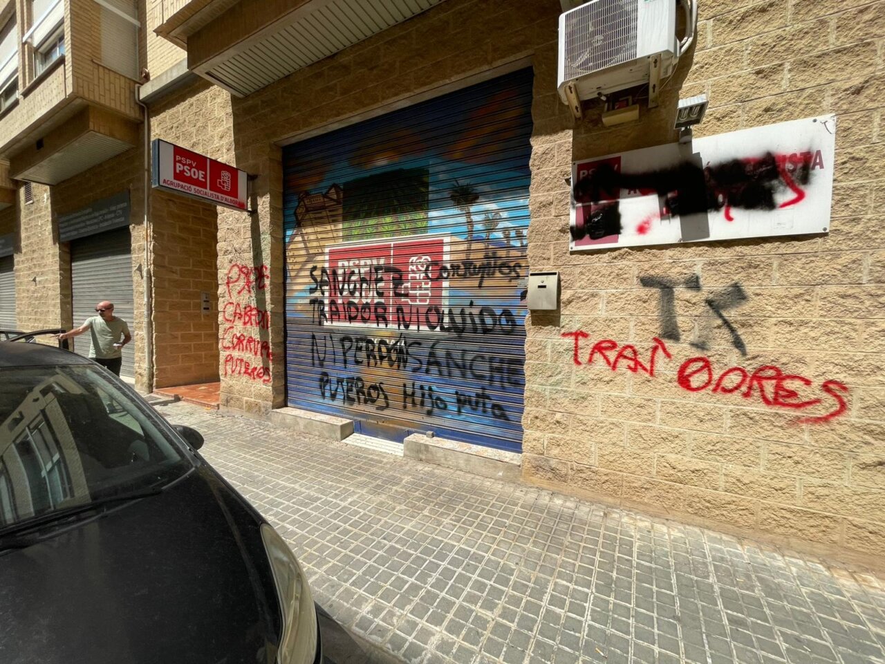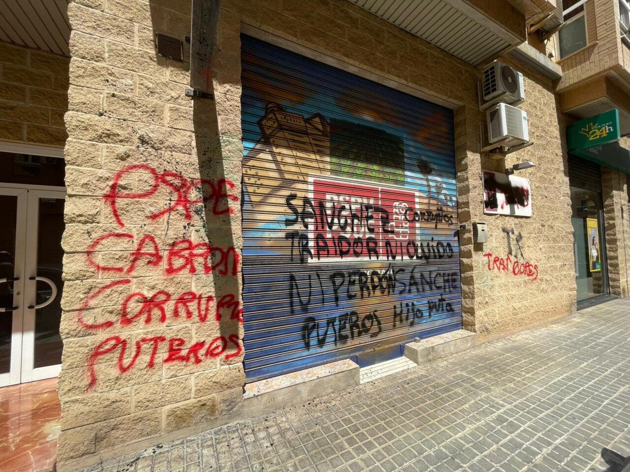 Las sedes del PSPV-PSOE en la comarca de l'Horta han amanecido este sábado con diversas pintadas ofensivas e insultos dirigidos al partido y a sus dirigentes, entre ellas mensajes como “corrupto”, “puteros”, “vendeobreros” o “Pedro Sánchez HDP”. Los ataques han afectado a las fachadas, puertas y suelos de ambos locales, en una nueva oleada de actos vandálicos contra el PSOE en la comarca de l’Horta.
