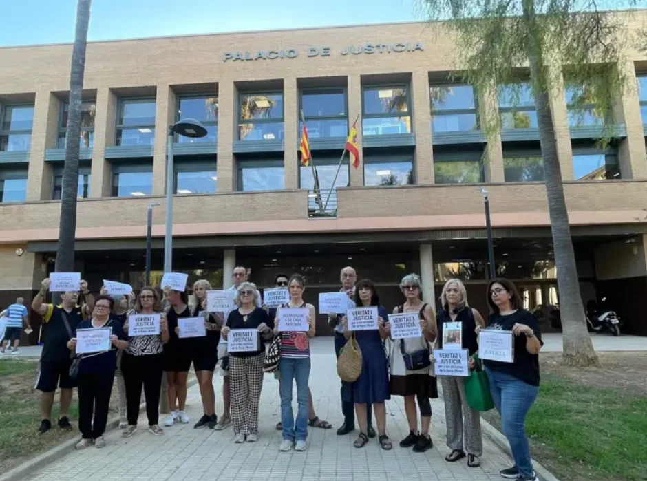 Miembros de la Associació Víctimes Mortals Dana 29-O se han concentrado este lunes 1 de septiembre ante los juzgado de Catarroja coincidiendo con la vuelta de la actividad judicial a estas dependencias tras haber sido rehabilitadas por los daños ocasionados por ese temporal y para expresar su apoyo a la jueza que instruye la causa.
